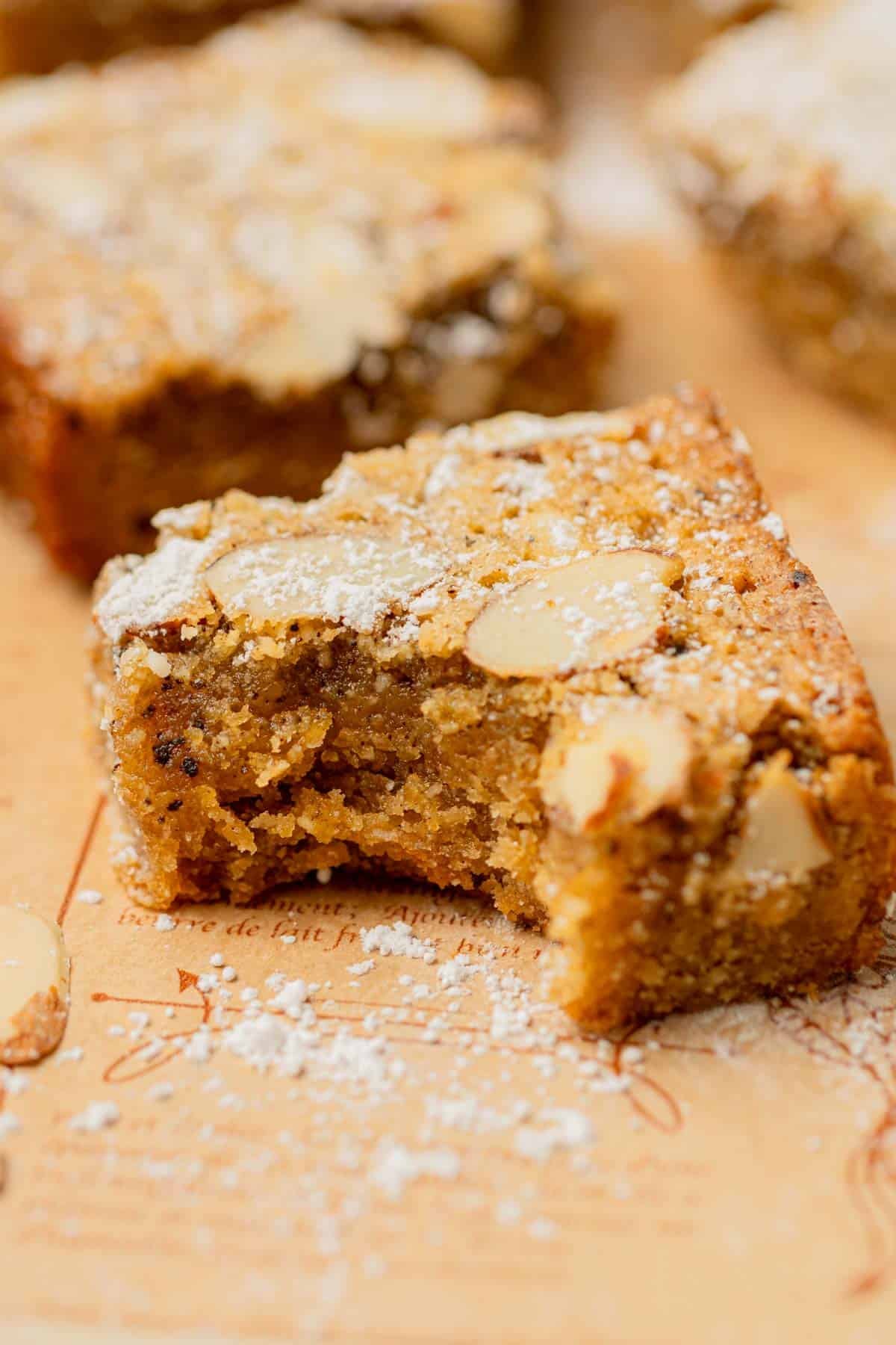 "These Almond Frangipane Blondies are incredible! The rich brown butter and almond flavor come together so perfectly. I may have had like 4 in one day...."