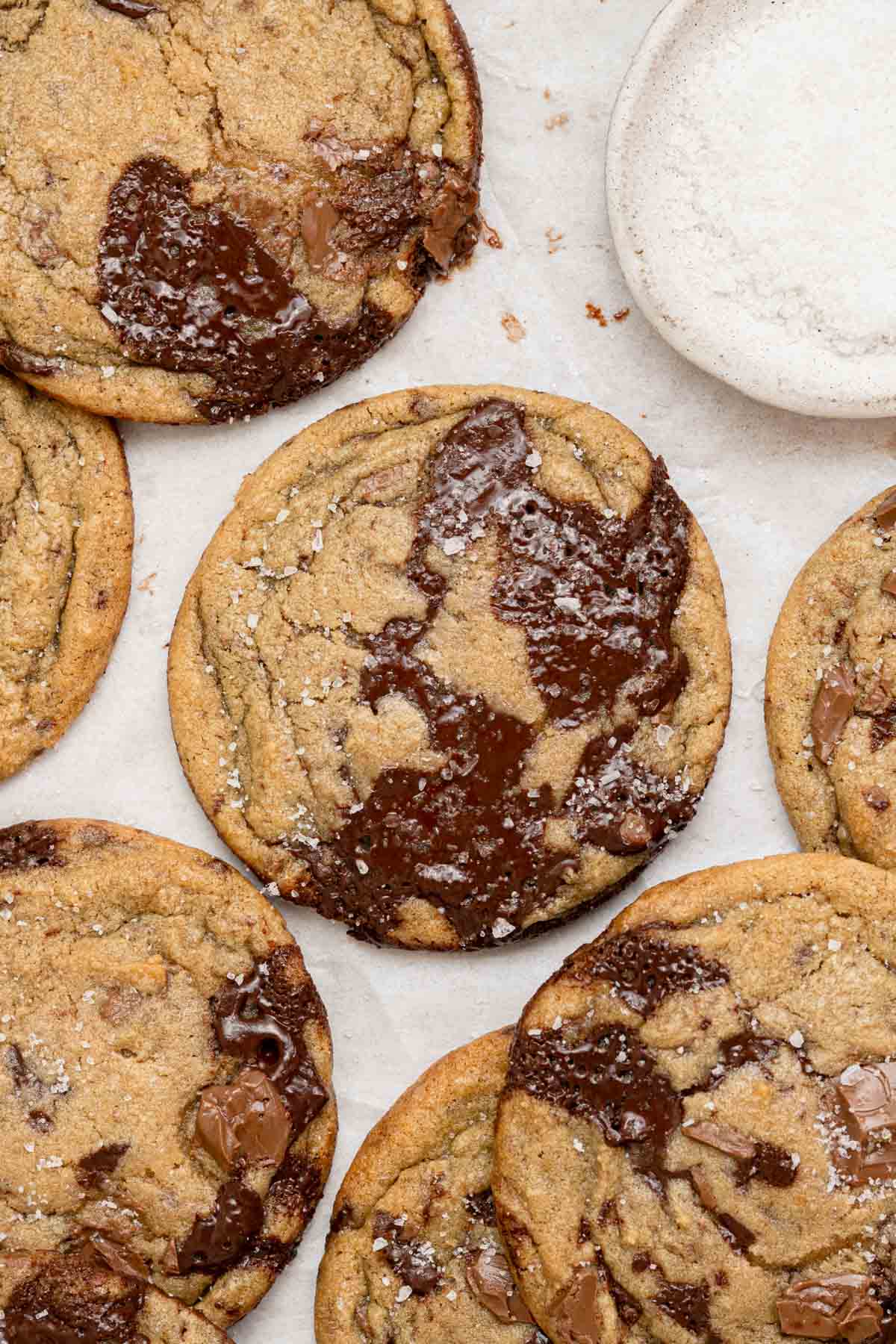 Salted butter: I used to be team "unsalted butter" for cookies, but once I started using salted butter, game changer. It gives the cookies so much more depth of flavor. I also add a little more salt (I use table salt for baking).